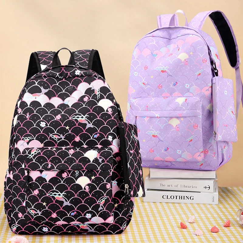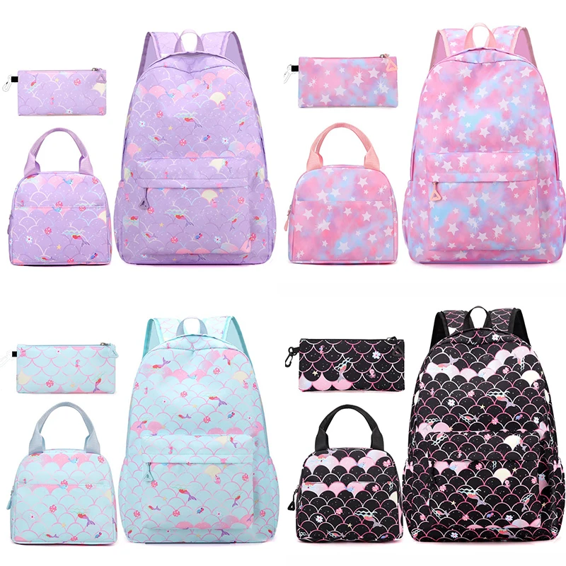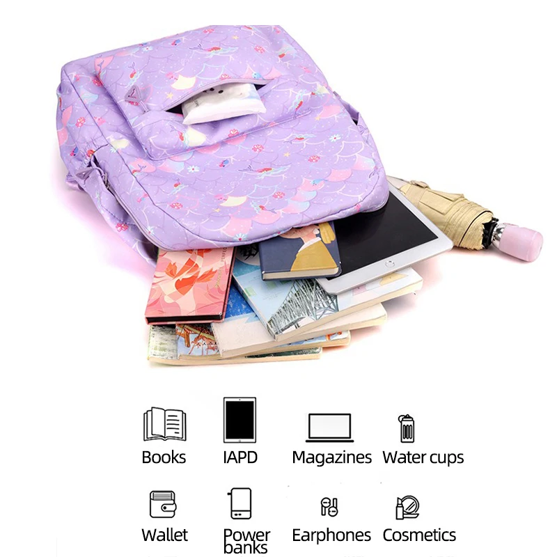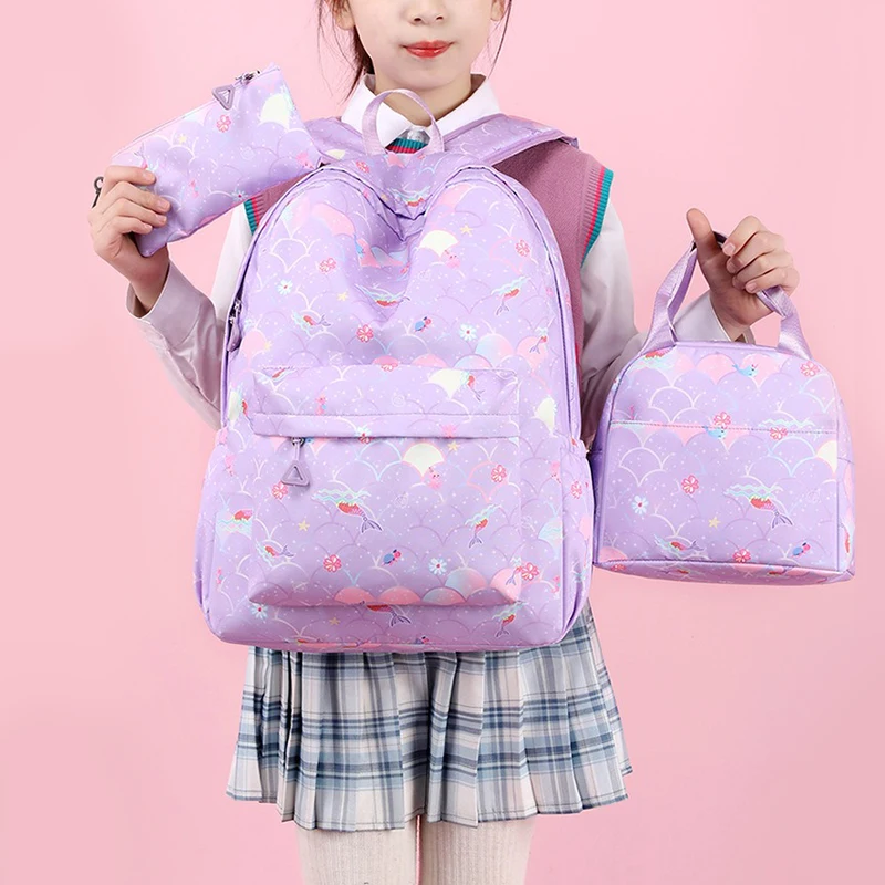 3 قطع/مجموعة حقيبة ظهر My Little Pony بتصميم حورية البحر الملونة للنساء، حقائب مدرسية كاجوال مع حقيبة غداء للفتيات المراهقات.
