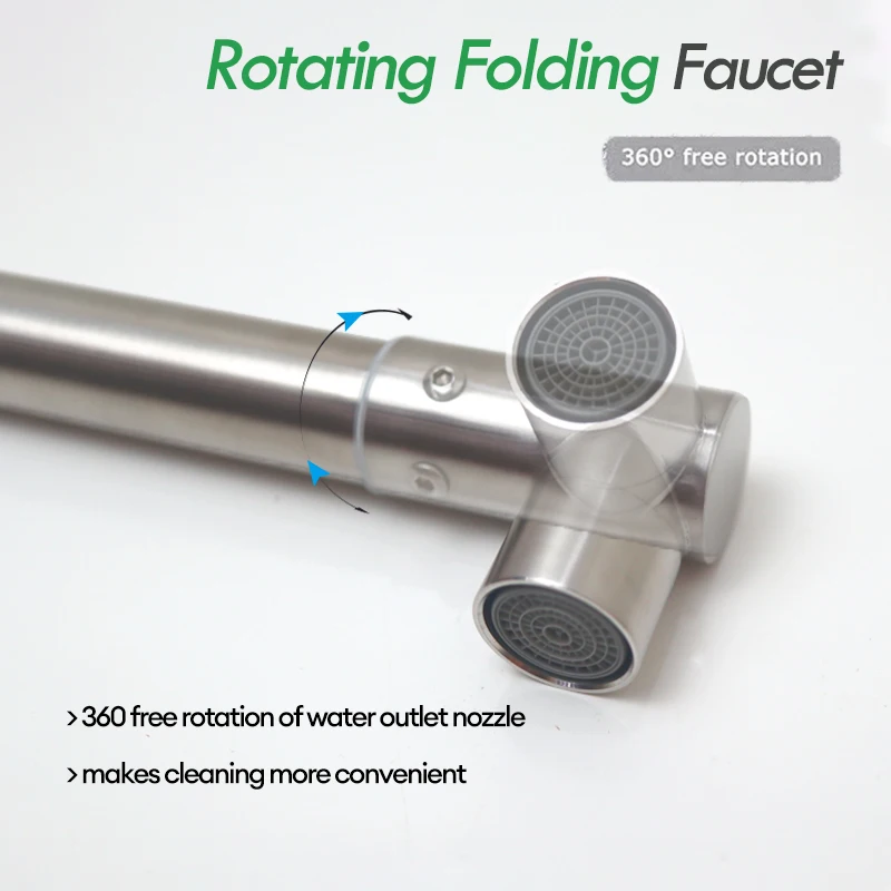 صنبور حائط قابل للطيّ من ماركة Baokemo، مصنوع من الفولاذ المقاوم للصدأ 304، بتصميم عالميّ متعدد الاتجاهات، للاستخدام في المطابخ، مزوّد بخراطيم مياه باردة مخفية.