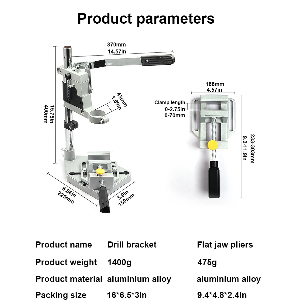 الميزة: 1.قوي ودائم:مصنوع من مادة سبائك الألومنيوم، تم تصميم حامل المثقاب الكهربائي هذا ليكون قويًا ويدوم طويلاً.فهو يضمن منصة مستقرة لمهام الحفر الخاصة بك، مما يوفر الموثوقية والمتانة. 2.مريحة ودقيقة:مع مقياس قياس 60 مم، يتميز حامل المثقاب هذا بتصميم سهل الاستخدام يوفر علامات مرجعية لعمليات الحفر الدقيقة.فهو يساعد على تحسين الدقة من خلال توفير التوجيه البصري أثناء مهام الحفر. 3.تصميم قابل للتوسيع:يشتمل هيكل سبائك الألومنيوم لهذا الإطار الثابت للمثقاب العلوي للطاولة على أخدود تمدد أرضي، مما يسمح بتركيب ملحقات أو أدوات رقص إضافية.تعمل قابلية التوسيع هذه على تعزيز تعدد خيارات الاستخدامات والتخصيص. 4.تطبيق حامل الحفر:يعمل هذا التصميم الجديد العملي لظرف آلة الحفر هذا بمثابة حامل مثقاب، مما يوفر قاعدة آمنة للمثقاب المحمول باليد.فهو يسمح بتحسين الاستقرار والتحكم أثناء الحفر، مما يؤدي إلى تعزيز الدقة والكفاءة. 5.الحفر الدقيق:يتم استخدام دعامة ملزمة المطحنة على نطاق واسع للحفاظ على استقرار لقمة الحفر أثناء تطبيقات الحفر المختلفة.إنها تساعد في تحقيق دقة حفر أعلى، مما يجعلها أداة أساسية للمحترفين وعشاق الأعمال اليدوية على حدٍ سواء. المواصفات : المنشأ: الصين لوازم DIY: النجارة رقم الموديل: حامل مثقاب كهربائي المواد: سبائك الألومنيوم + المعدن الحجم: كما هو موضح